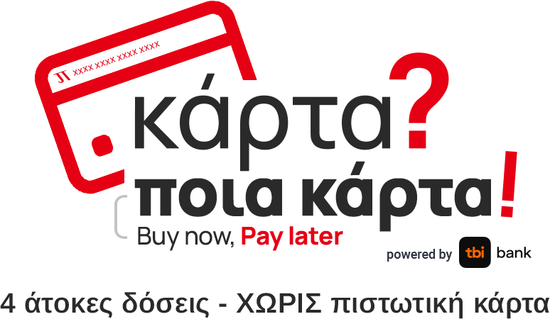 Η υπηρεσία Κάρτα ? Ποια Κάρτα ! 4 Άτοκες δόσεις είναι διαθέσιμηγια αγορές από 20€ έως και 500€. Οι 4 δόσεις είναι άτοκες και η μοναδική επιβάρυνση είναι 1,5€ ανά δόση, σύνολο 6€ στις 4 δόσεις ανεξαρτήτως ποσού.