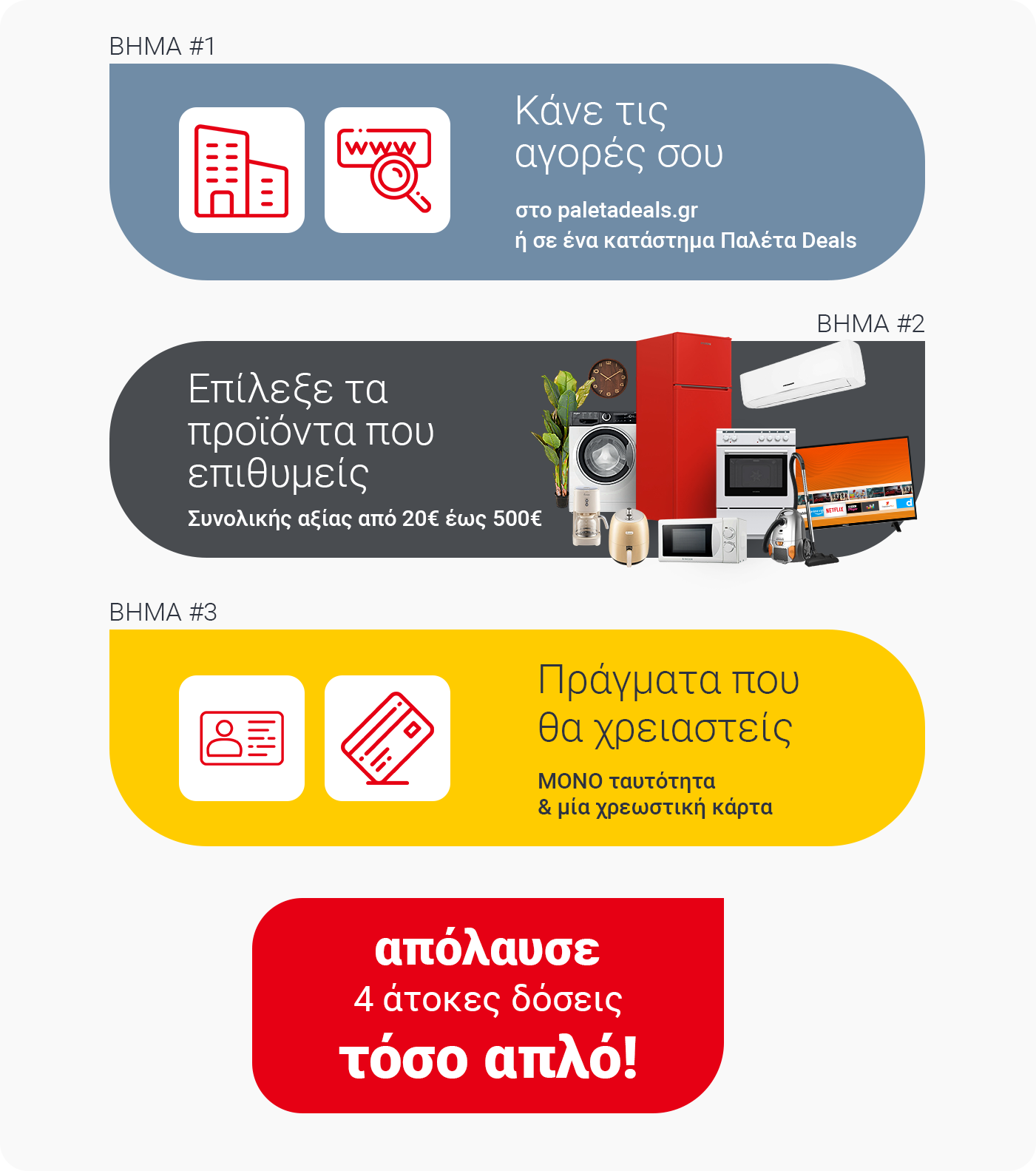 Ως Υπεύθυνος Επεξεργασίας η εταιρία PaletaDeals Ε.Π.Ε με Α.Φ.Μ 095506764, έδρα στην Αθήνα Αττικής, Στουρνάρη 27Δ, Τ.Κ. 10682, email: datap@PaletaDeals.gr, τηλ: 2105714144 και website: www.PaletaDeals.gr χρειάζεται την συγκατάθεση σου έτσι ώστε να σου στέλνει Προσφορές, Νέα και να σου προσφέρει εξατομικευμένη εξυπηρέτηση μέσω Email, Newsletter, Sms , Viber Και Social Media. Μετά την συγκατάθεση σου θα λάβεις αυτοματοποιημένο μήνυμα επιβεβαίωσης στο email που μας έχεις δηλώσει.